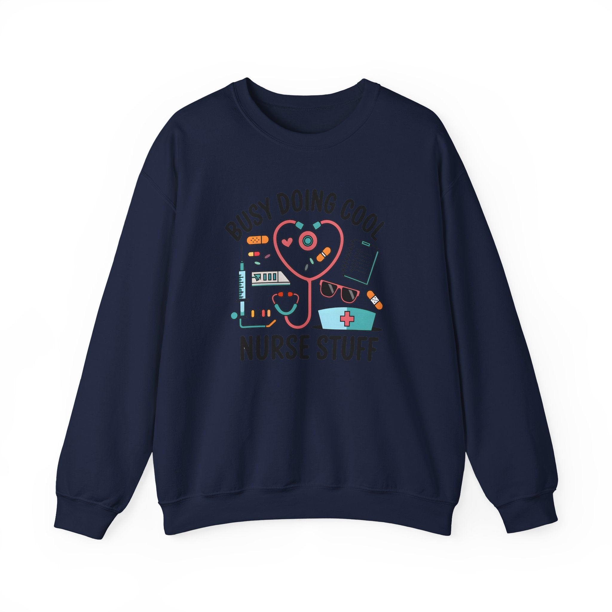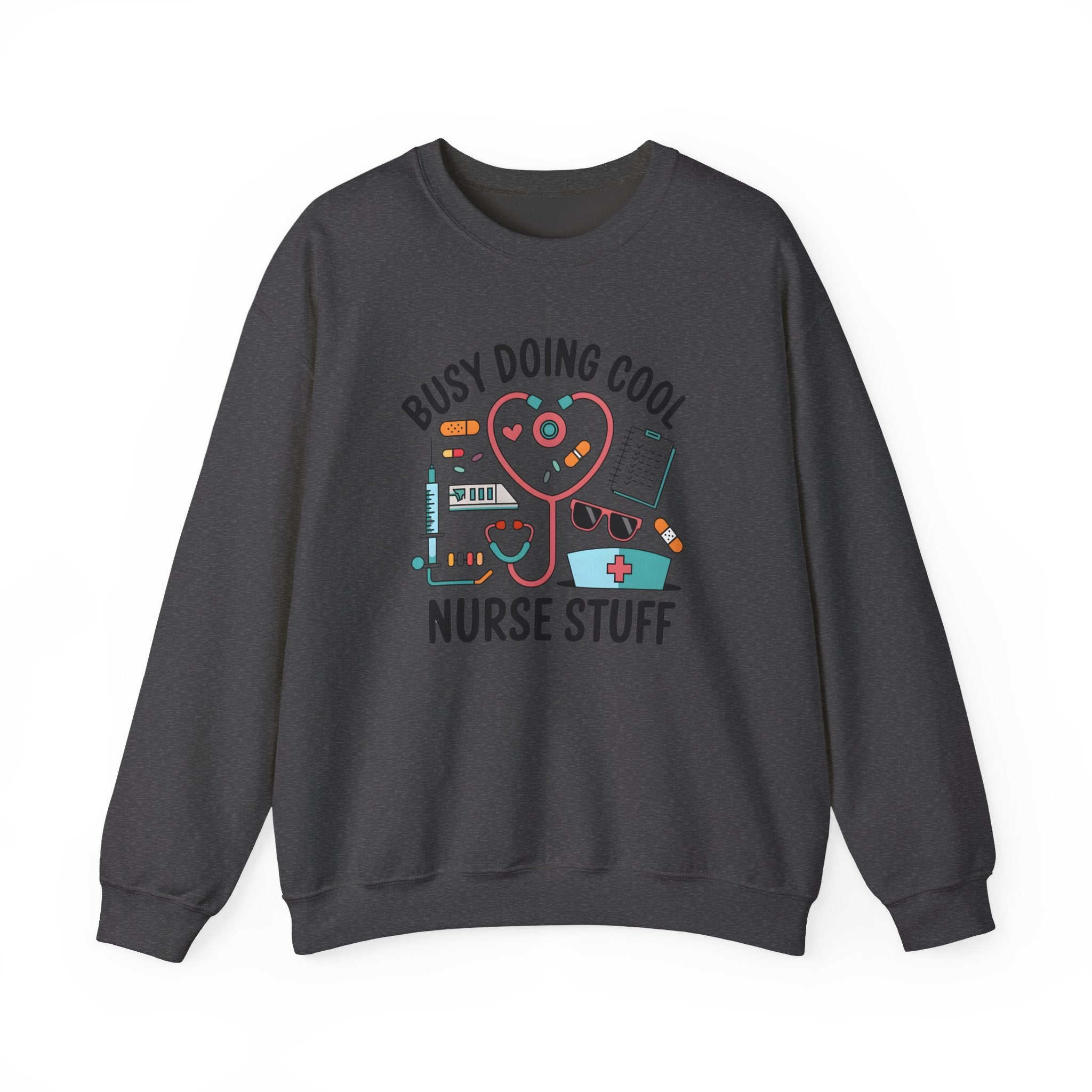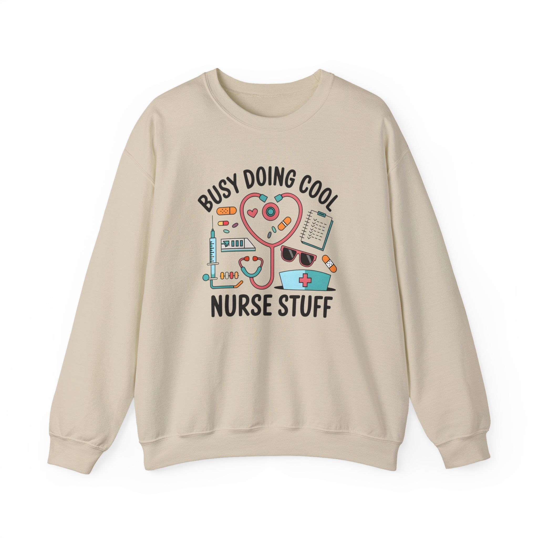 Nurse Sweatshirt - "Busy Doing Cool Nurse Stuff" Cozy Crewneck for Nurses, Cute Medical Gifts