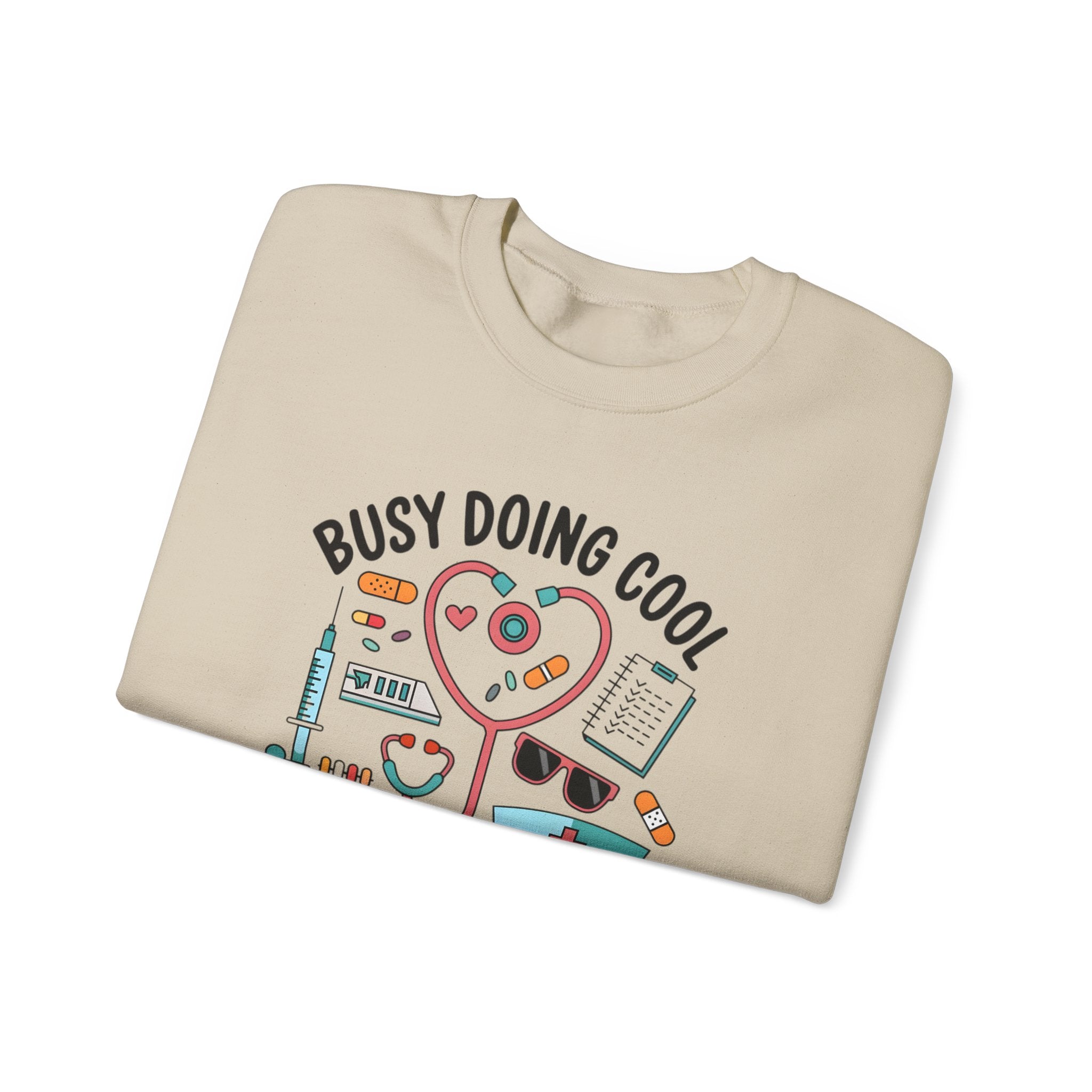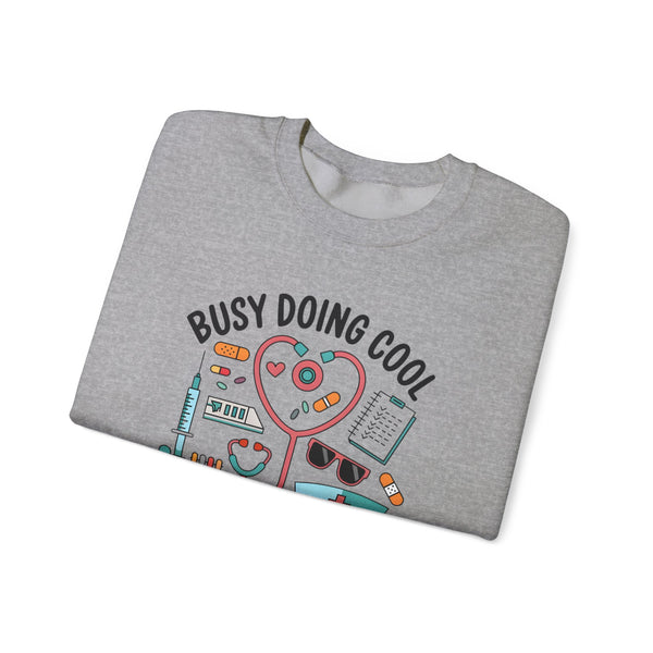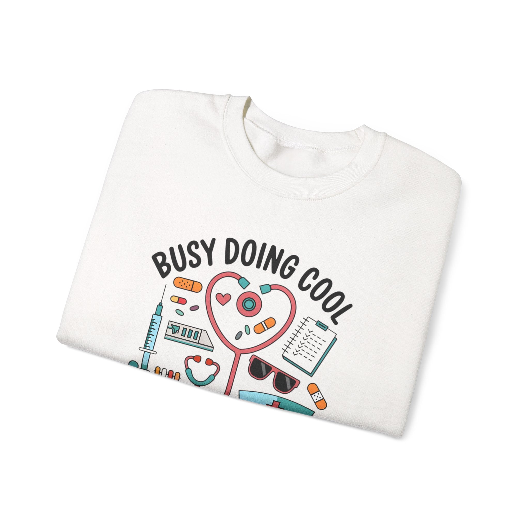 Nurse Sweatshirt - "Busy Doing Cool Nurse Stuff" Cozy Crewneck for Nurses, Cute Medical Gifts